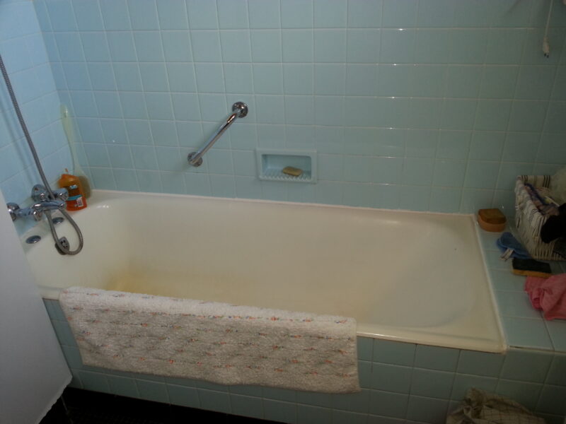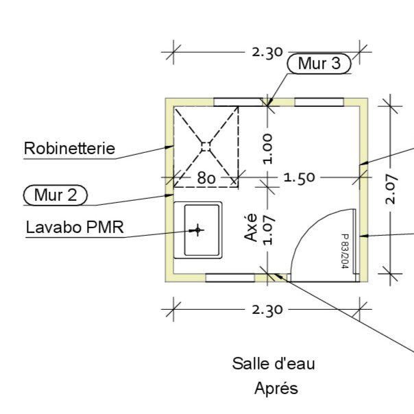 MG Habitat propose de reprendre l’ensemble de la pièce de manière à anticiper un besoin plus important dans un avenir proche. Le remplacement de la baignoire permet de modifier la position des points d’eau, de façon à avoir plus d’espace de circulation dans la pièce. La baignoire est évacuer, le lavabo suspendu est installé à coté de la douche de plain-pied. la barre de douche est spécialement conçu comme une barre d’appui qui permet la prise horizontale et verticale. La préhension du robinet thermostatique est simplifiée. Une canne ou un fauteuil sont tout à fait adaptés à l’espace. Et bien sûr, un carrelage adapté antidérapant.