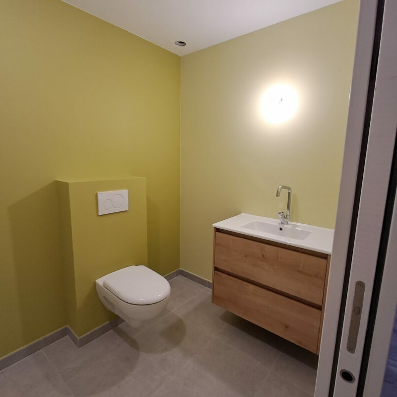 Séparation de la maison en deux appartements distincts et autonomes. Pour l’ensemble, réalisation d’une rénovation thermique en apportant une isolation par l’extérieur (ITE) et en remplaçant tous les ouvrants par des menuiseries en aluminium laqué gris taupe. Mise aux normes de l’installation électrique, du système de chauffage et du réseau sanitaire. L’appartement du haut sera rafraichi et l’appartement du bas sera entièrement réagencé et répondra à des besoins d’accessibilité avec la création d’une rampe d’accès bois/métal, une circulation intérieur et un espace sanitaire adapté, ainsi qu’un accès direct à une terrasse extérieure entièrement créée. Les dimensions des ouvertures du rez-de-chaussée seront modifiées pour permettant une circulation plus fluide et plus de luminosité.