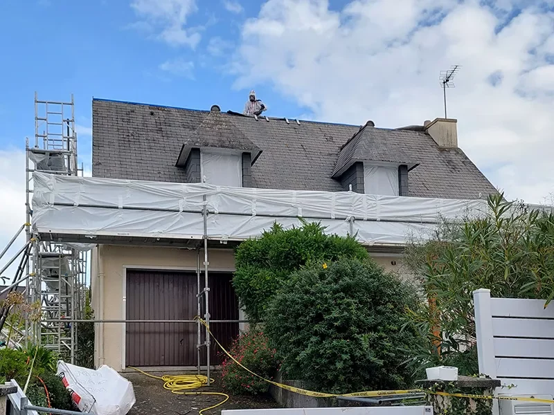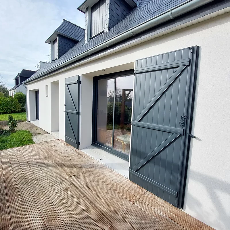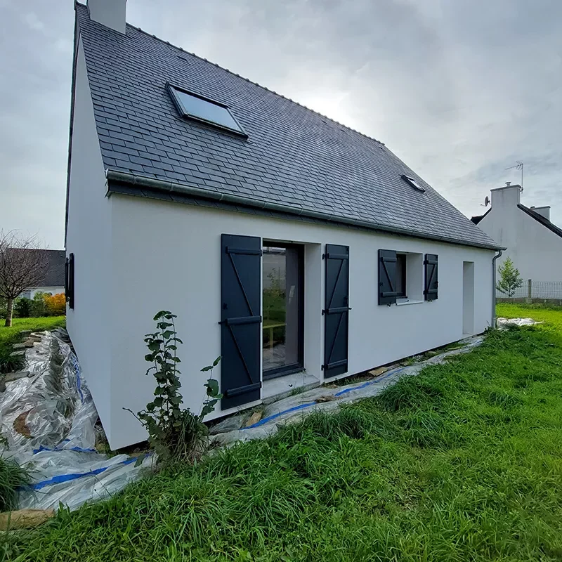 MG Habitat propose une ITE (Isolation Thermique Extérieure) avec finition en enduit, le remplacement des ouvrants par des menuiseries et volets battants en Aluminium, le désamiantage de la toiture et le remplacement par de l’ardoise naturelle, mais également quelques adaptation en électricité.